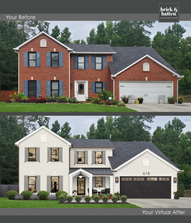 White painted brick increases curb appeal. These materials including brick and stone dont fade at all. As such our designers decided to add vertical siding in Iron Ore by.